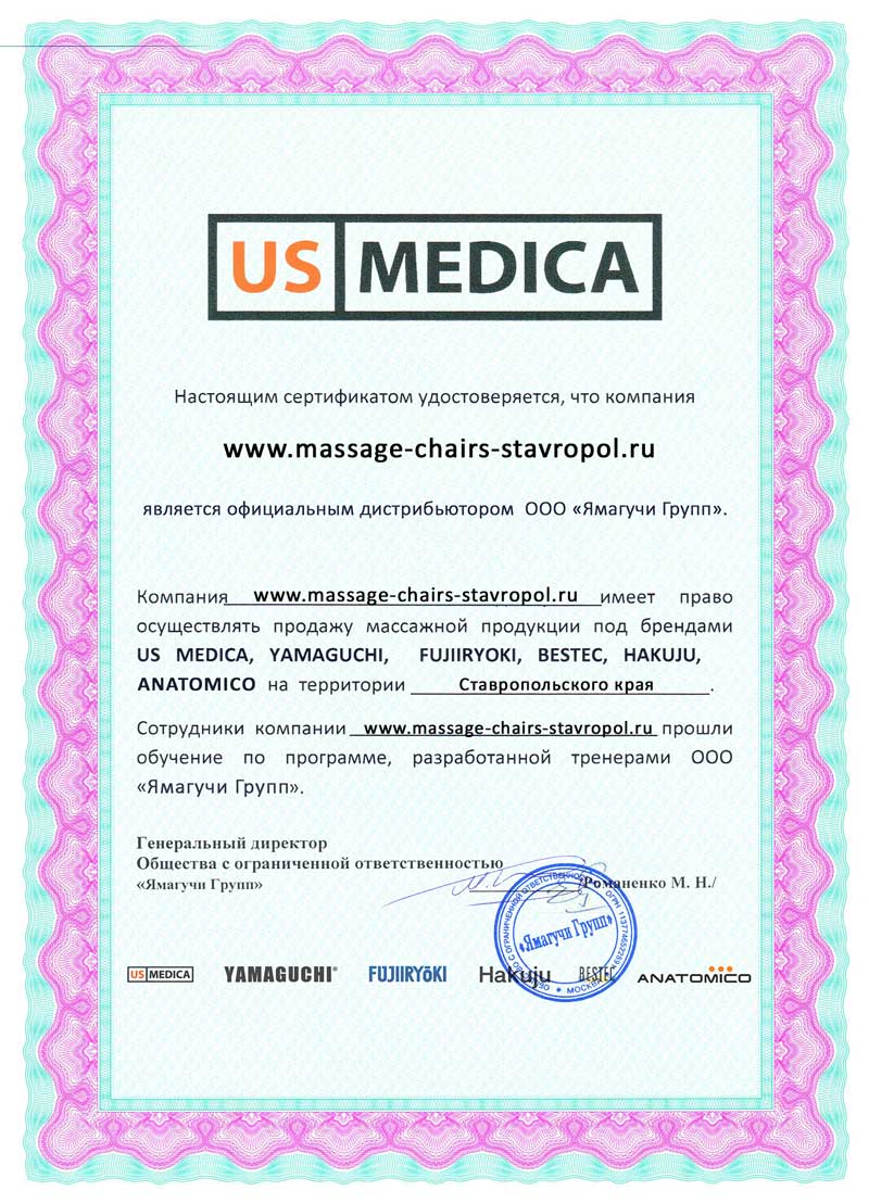 Магазин массажных кресел «Massage-Chairs-Stavropol.ru» — официальный дилер массажного оборудования US Medica, Yamaguchi, Fujiiryoki, Hakuju, Anatomico, Panasonic, в Ставропольском крае.