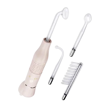Компактный импульсный массажёр имеет в комплекте 4 насадки. Это специальные стеклянные электроды разной формы, наполненные неоном или воздухом. Девайс можно использовать 2-мя способами: контактным (т.е. касаясь насадкой кожи) и бесконтактным (когда электрод находится на расстоянии 1-4 мм от кожи). Первый метод эффективен, например, при лечении целлюлита и варикоза, второй способен обеззараживать кожу (без химических повреждений), помогая бороться с угревой сыпью и ускорять заживление ран.