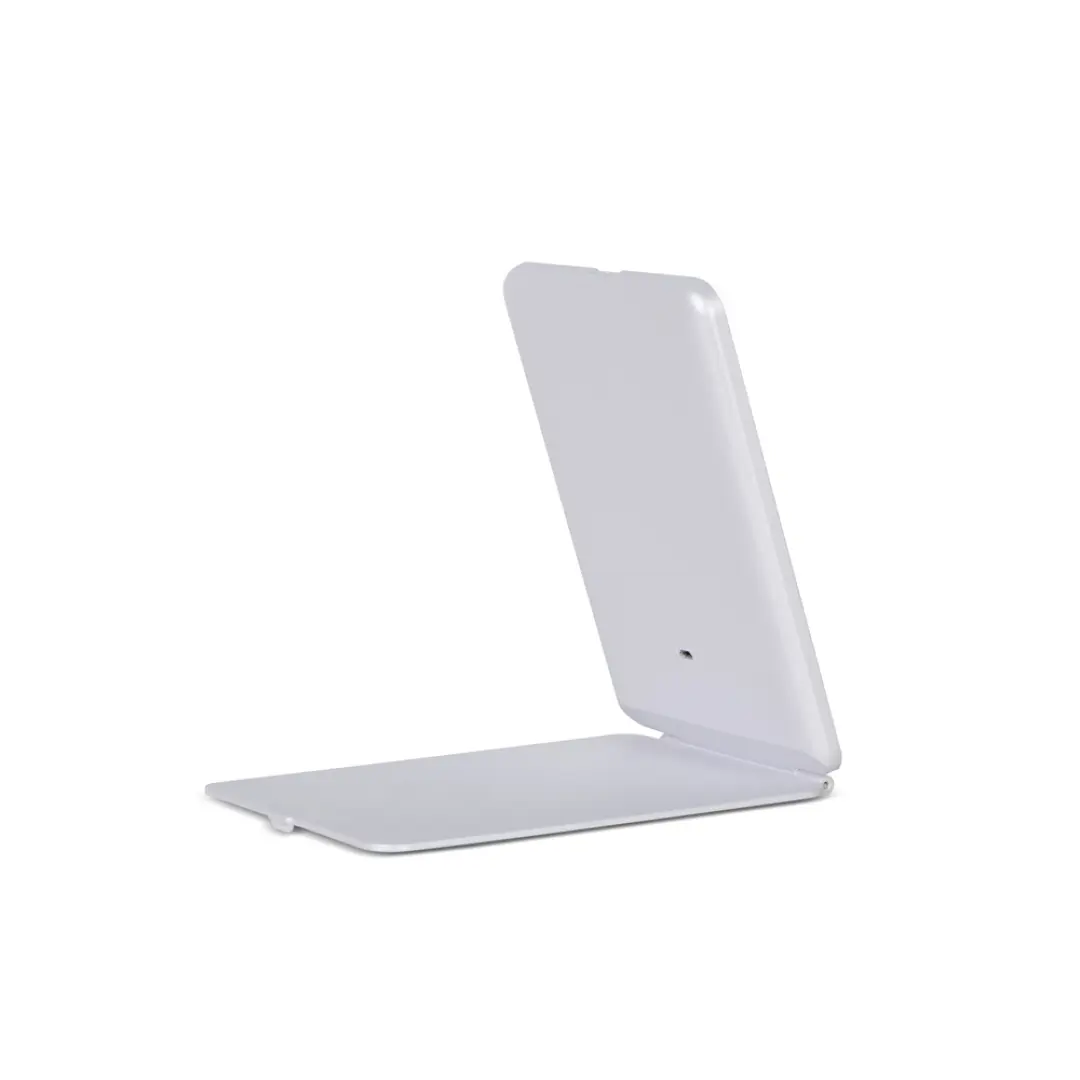Да, зеркало не обязательно держать в руках. У него есть подставка, на которой аксессуар удобно и надёжно стоит. Функцию подставки выполняет крышка зеркала. Она открывается на угол до 220 градусов и становится прекрасной опорой для аксессуара на любой горизонтальной поверхности.