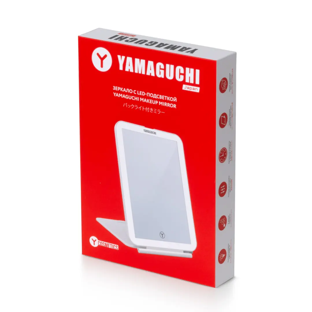Зеркало в виде планшета, с подсветкой, прочным корпусом и удобной подставкой представляет компания Yamaguchi – один из мировых лидеров в производстве товаров для красоты и здоровья, новатор в данных областях.